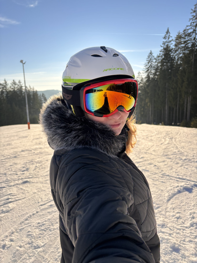 Koncem února se už kopce kolem Lipna začínaly zelenat, ale sjezdovka byla pořád krásně zasněžená. Párádní místo na lyžovačku s rodinou.