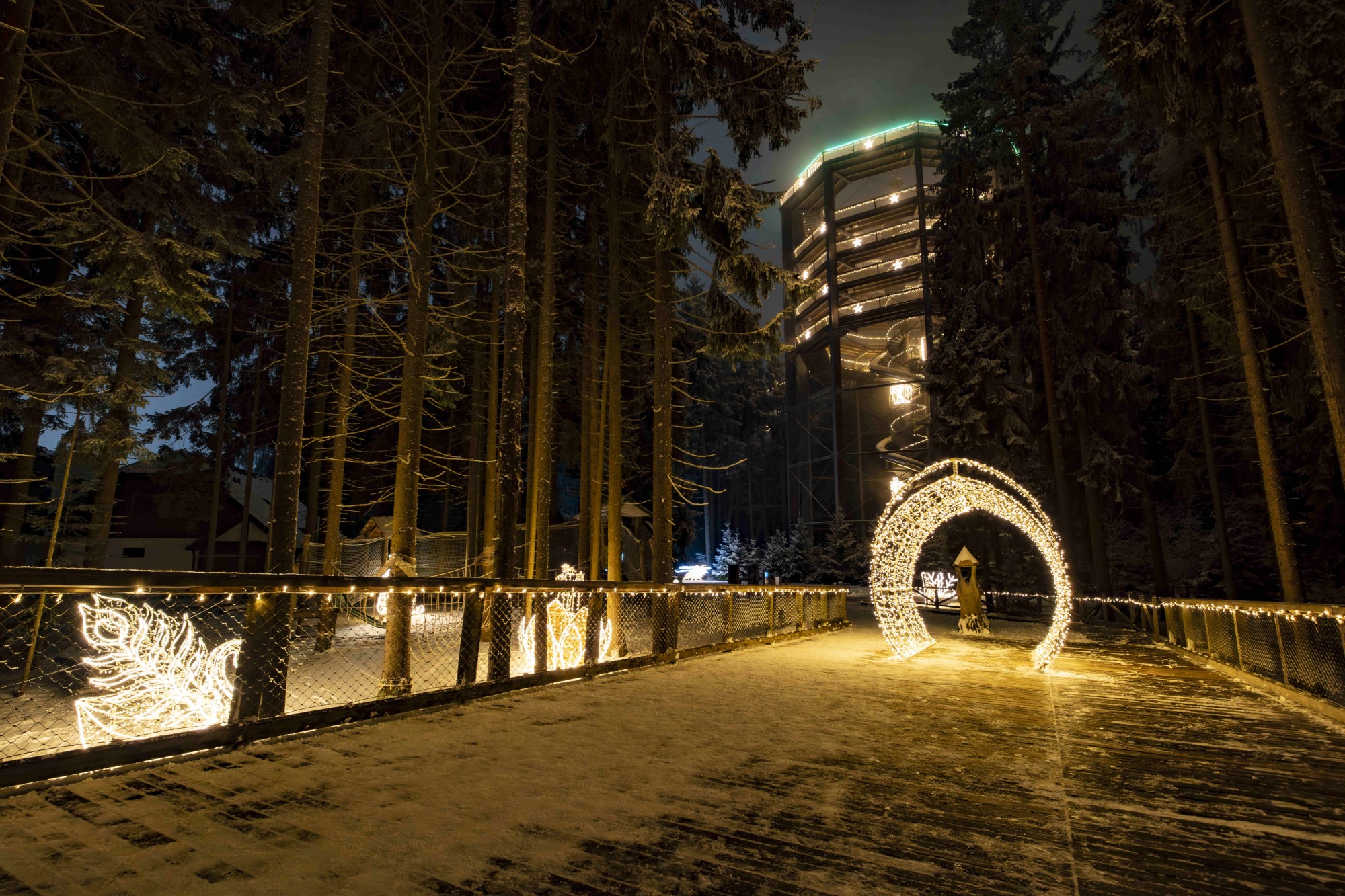 Es geht schon heute los! Ab heute verwandelt sich der Baumwipfelpfad in eine magische Welt voller Lichter, Farben und Emotionen. Jeden Abend von 17:00 bis 20:00 Uhr (letzter Einlass um 19:00 Uhr) erwartet Sie die atemberaubende Atmosphäre des abendlichen Waldes – tausende Lichter, leuchtende Tiere, märchenhafte Ecken und ein lichtdurchfluteter Weg bis zur Spitze des Pfades. Das ist kein gewöhnlicher Spaziergang – das ist ein Erlebnis, das Sie nicht vergessen werden. Der Stezkabus bringt Sie bequem direkt zum Ort des dění, und der Eintritt bleibt derselbe wie tagsüber – keine speziellen oder teureren Tickets. Und neben dem Baumwipfelpfad können Sie das Lichterspektakel auch am See auf dem Steg genießen. Kommen Sie und lassen Sie sich verzaubern. Der Winter am Lipno beginnt im großen Stil – mit Licht!