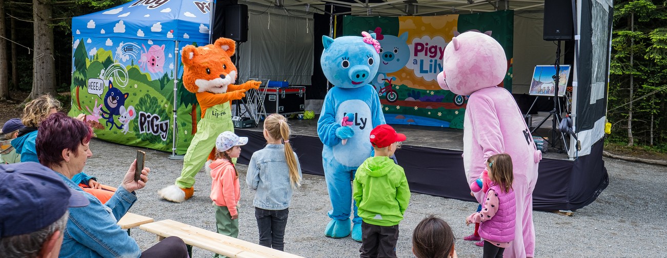 Die Pigyáda ist da! Am Samstag, dem 14. Juni, verwandelt sich das Königreich des Waldes in einen märchenhaften Ort voller Spaß, Lachen und Abenteuer. Das beliebte Schweinchen Pigy und seine Freundin Lily können es kaum erwarten, Sie zu begrüßen. Es erwartet Sie ein reichhaltiges Programm mit Konzerten, Theateraufführungen und Wettbewerben für kleine und große Besucher. Kommen Sie und genießen Sie einen unvergesslichen Tag in einem der schönsten Kinderparks der Tschechischen Republik. Das Königreich des Waldes ist bequem mit dem Stezkabus vom Kundeninformationszentrum und Parkplatz P1 oder mit einem gemütlichen Spaziergang vom Parkplatz P2 aus zu erreichen.