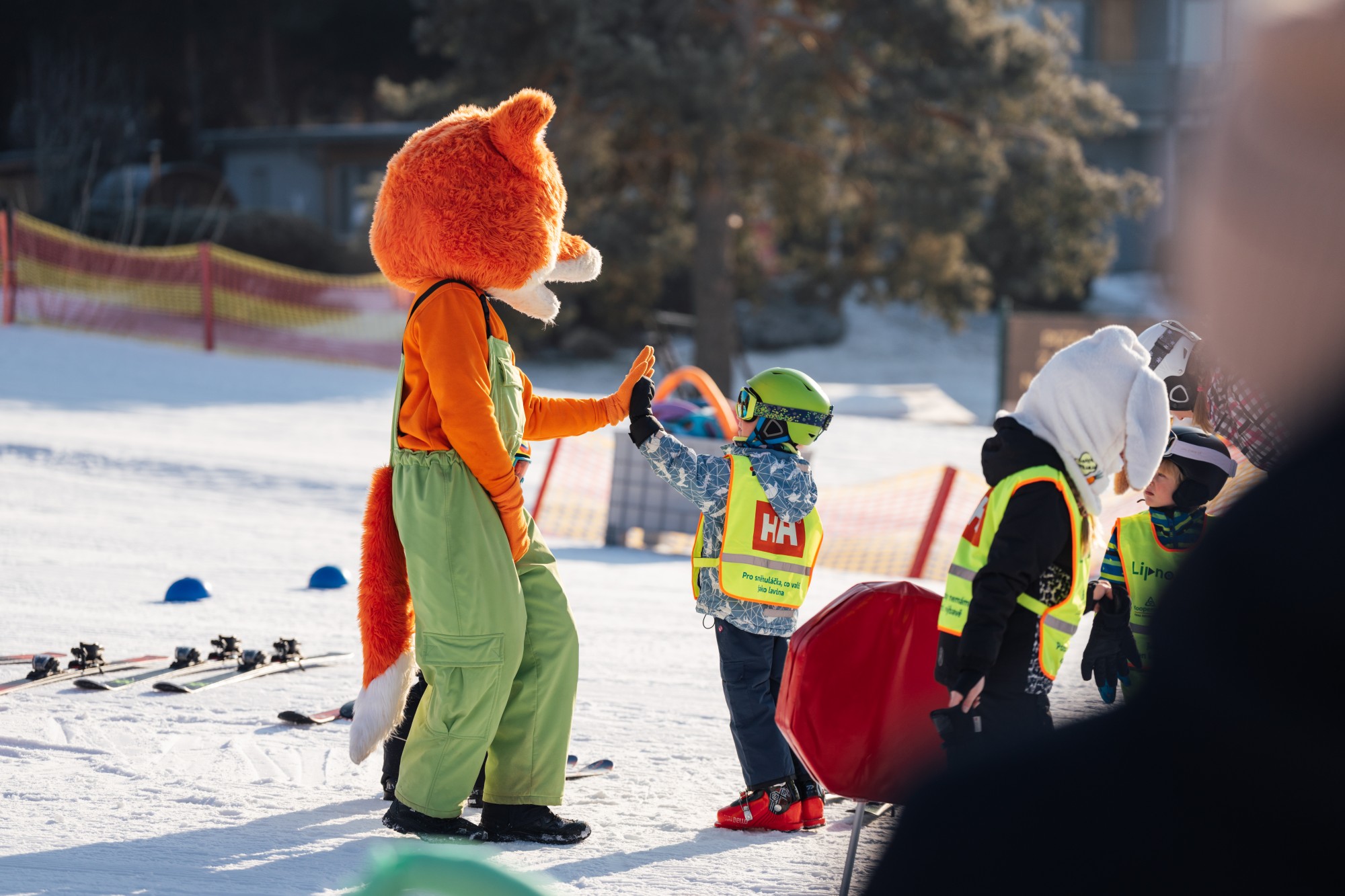 Verspielter Einstieg ins Skifahren für Kinder von 3 bis 10 Jahren. Spaß im Schnee unter der Leitung unserer Kinderinstruktoren, Animateure und des Fuchses Fox.