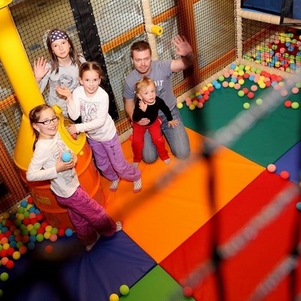 A pleasant snack bar to sit at for refreshments . If the weather is nice, an outdoor part with a long downhill run with inflatable rings and a track for pedal cars for children and adults also open.