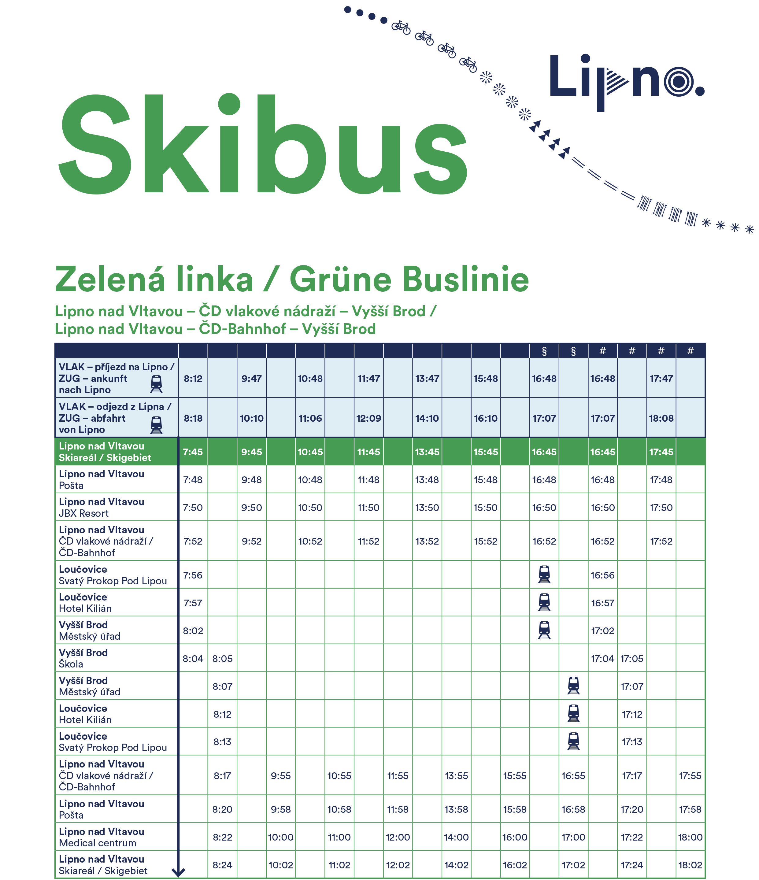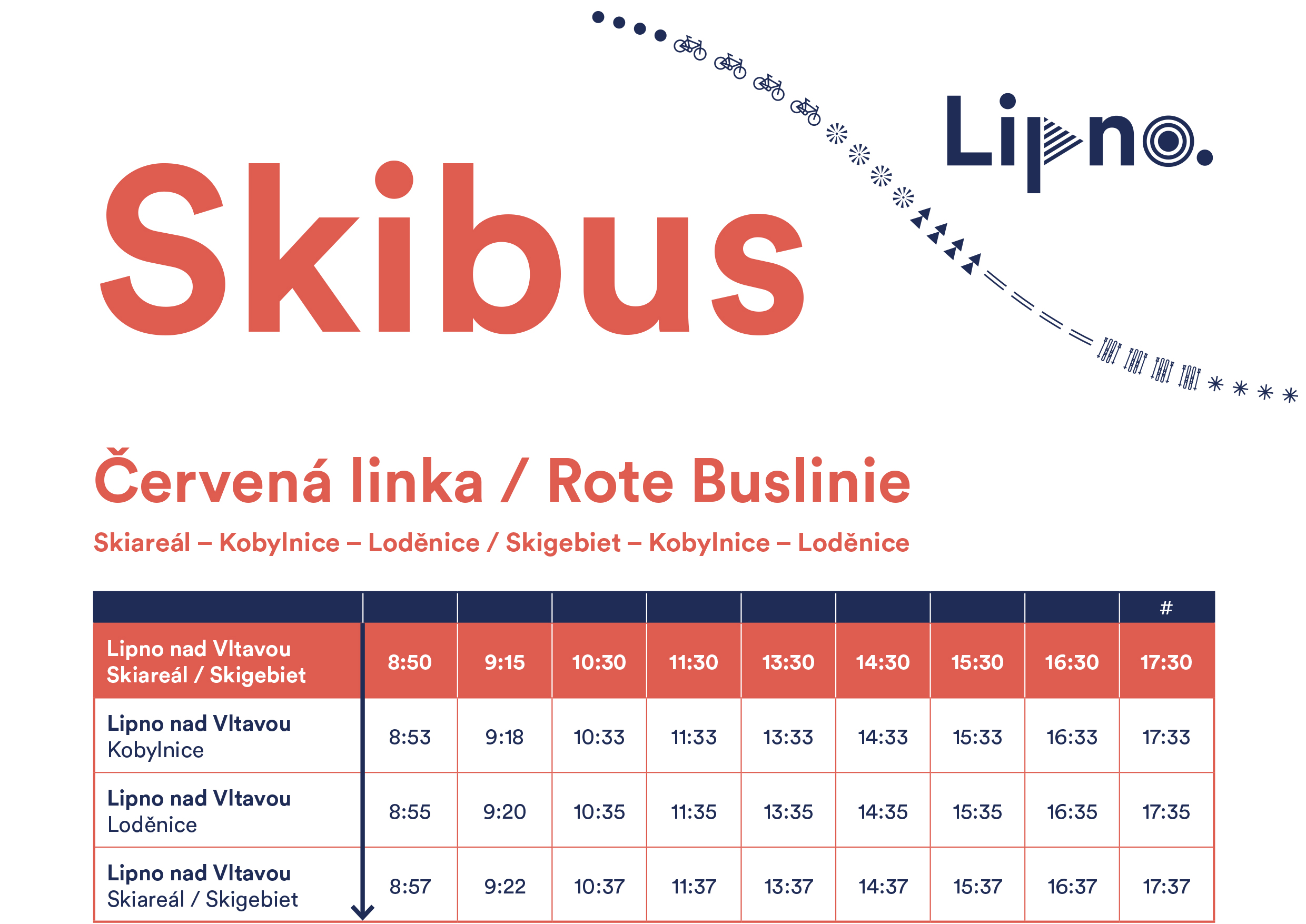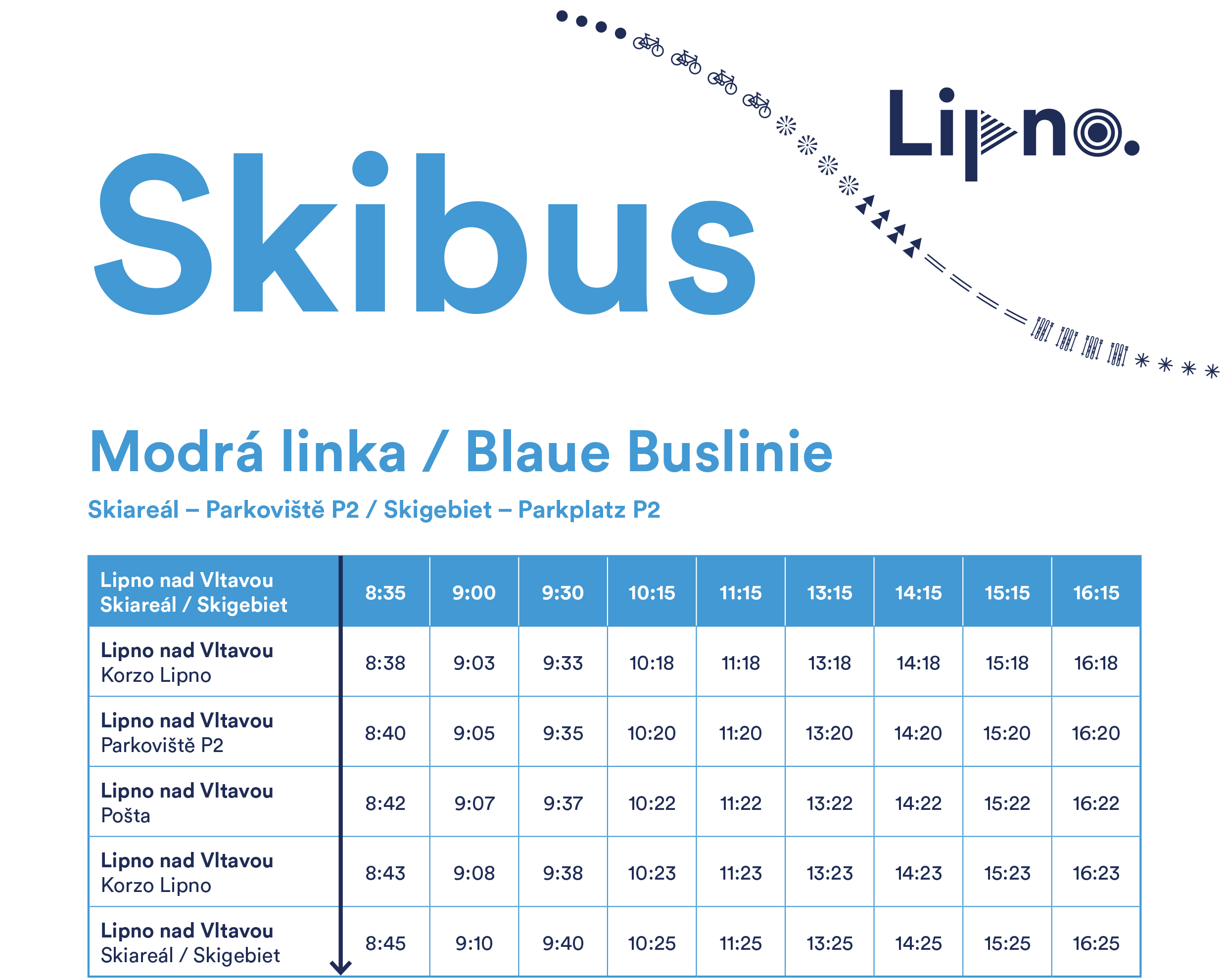 Tato služba je ideálním řešením pro ty, kteří chtějí maximalizovat svůj čas na svahu a minimalizovat starosti s dopravou. Bezplatný skibus nabízí pravidelné spoje, umožňující snadné a pohodlné přepravení mezi centrem Lipna a lyžařským střediskem. Skibus je v provozu od 19.12. 2025.